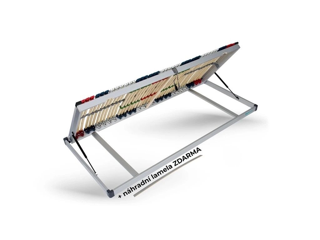 18 zdvojených lamel s posuvnými opasky umožňují regulovat tuhost a tím i tlak vytvářený na matraci v bederní oblasti. Posunutím opasků lze matraci buď více přitvrdit nebo více vyměkčit.