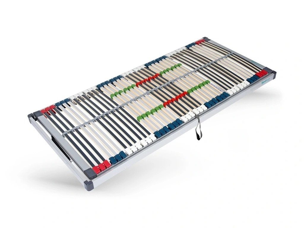 7 anatomických zón pro zlepšení tvarovacích schopností roštu pod matrací. Dosaženo je toho tím, že lamely jsou umístěny v rozdílně reagujících pouzdrech.
