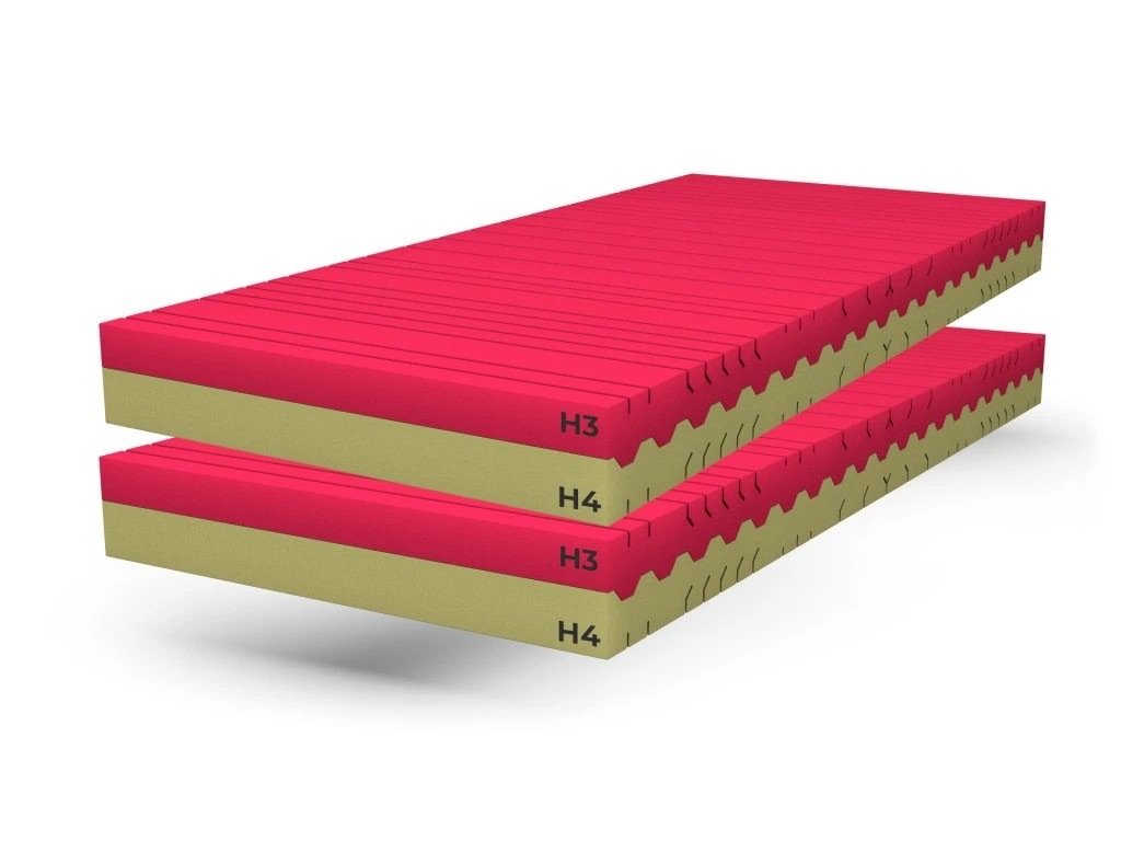 Matrace má dvě strany tuhosti H3 (středně tuhá) nebo H4 (tuhá).