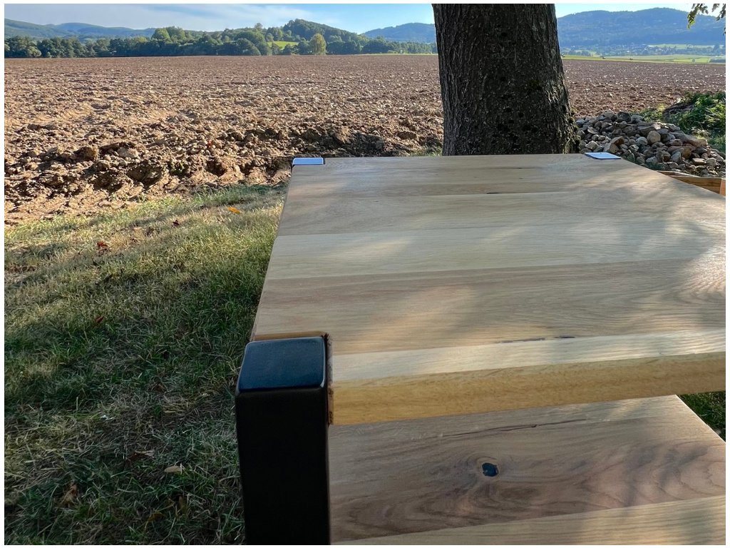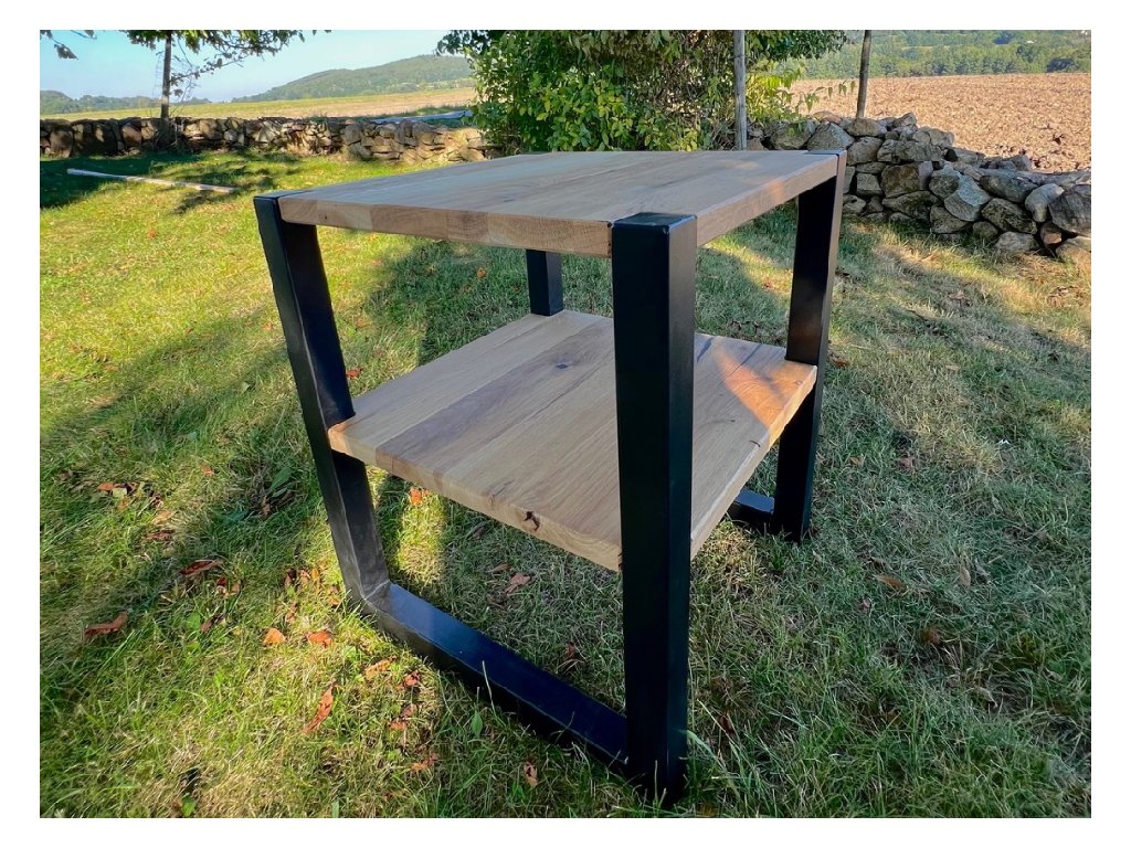 Noční stolek Brloh spojuje dubový masiv s kovovými detaily v industriálním stylu. Možnost volby rozměru, barvy kovu dokonalý parťák postele Brloh.