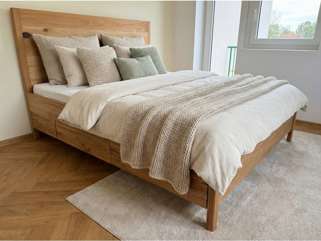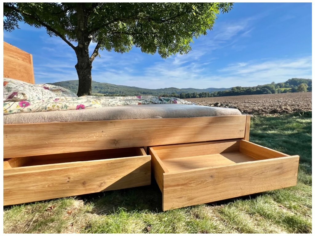 Masivní dubová postel Pohoda – Mistr úložného prostoru