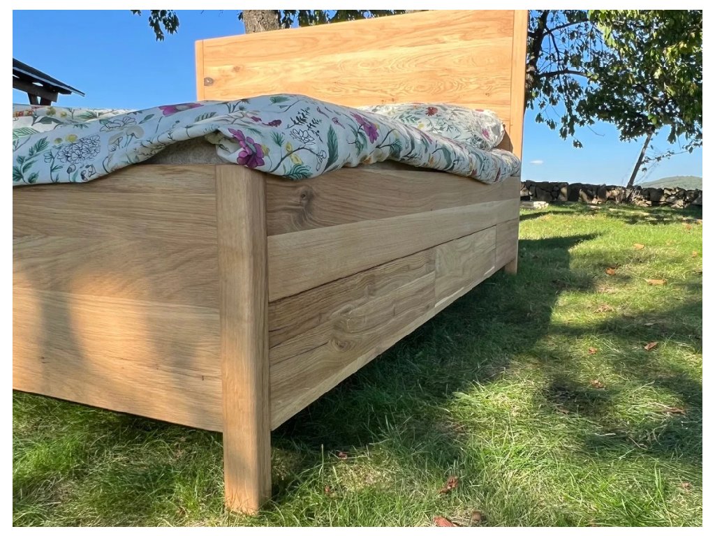 Postel Pohoda Elegantní postel z masivního dubu s praktickým úložným prostorem. Čtyři prostorné šuplíky s tichým dojezdem a otevíráním push-to-open poskytují dostatek místa pro uložení lůžkovin či oblečení. Díky možnosti LED podsvícení působí moderně a zároveň zajišťuje pohodlný pohyb v ložnici i během noci.